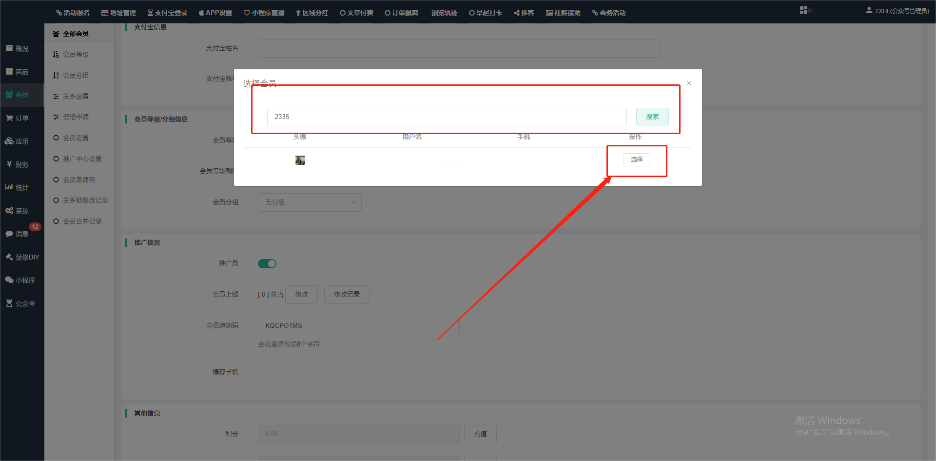 目录 搜索 展开 一、前期准备资料二、数字乡村码-上线操作指南1、服务号的申请流程及认证2、申请小程序流程3、开放平台绑定小程序和公众号三、数字乡村码-系统操作数字乡村码系统管理-概况数字乡村码-商品管理1、发布商品2、商品列表3、商品表单4、商品分类5、品牌管理6、配送模板7、评论管理8、优惠券管理9、商品标签10、退货地址设置11、满额优惠12、批量操作13、配送方式14、基础设置15、商品隐藏四、数字乡村码-会员管理1、全部会员2、会员等级3、会员分组4、资格申请5、会员设置6、推广中心设置7、会员邀请码8、会员关系链修改关系链修改记录9、会员合并记录10、账号注销管理11、会员设置中心五、数字乡村码-订单管理1、订单管理列表2、订单处理流程3、订单状态4、订单修改价格5、订单退款退货6、多包裹发货7、批量发货订单操作步骤8、催发货订单9、物流查询六、数字乡村码-财务管理1、余额设置2、会员余额3、充值记录4、转让记录5、余额明细6、收入明细7、提现设置8、提现统计9、积分管理10、转账审核11、收益广告12、批量充值七、数字乡村码-系统管理1、商城入口2、商城设置①、商城设置②、订单设置③、物流查询④、短信⑤、联系方式⑥、分类⑦、优惠券⑧、分享⑨、幻灯片⑩、广告位⑫、地图设置3、交易设置4、微信模板消息自定义消息模板(新版)自定义消息模板(旧版)小程序消息模板公众号模板消息变更公告5、语言设置6、权限管理7、多媒体管理八、数字乡村码-消息管理九、数字乡村码-应用管理十、数字乡村码系统-数据统计十一、数字乡村码-页面装修DIY1、模板管理2、店铺页面3、顶部导航4、底部导航5、DIY模板市场6、首屏广告7、基础设置8、装修DIY尺寸建议十二、供应商功能插件操作指南1、供应商2、门店-收银台门店申请和使用步骤门店管理①、门店-收银台 营销设置②、门店-收银台 分润设置门店分类门店申请门店审核门店商品门店商品订单收银台订单数据统计核销员基础设置默认设置门店装修3、微社区4、会务活动十三、营销插件操作指南活动报名提货卡新人奖微店问卷调查积分视频分享1、视频分享基础设置2、视频分享发现管理3、视频分享分类管理4、视频分享评论管理5、视频分享分红记录6、视频分享短视频中心每日红包幸运大抽奖签到优惠券二维码任务奖励优惠劵文章音频文章付费文章限时购新海报拓客卡操作流程积分活动素材中心视频红包十四、入驻门店应用类1、门店预约2、附近商品3、门店定位设置4、门店控制5、门店满额包邮6、门店满额减7、导入商品8、门店搜索9、门店股东10、核销券11、多门店核销1、商城后台设置2、前端功能演示十五、常见问题1、后台登录密码修改流程2、会员-余额,积分,后台如何进行充值与扣除3、如何修改上下级关系4、一种万能的获取商城小程序路径的方法 暂无相关搜索结果! 阅读次数:1483 本文档使用 模王系统 发布 3、如何修改上下级关系 如何修改上下级关系一.如何修改上下级关系?1.会员-全部会员-可以通过搜索用户的独立ID,或者用户微信昵称,找到此会员,然后点击右边的(操作)2.再点击会员详情。3.滑到下面,有个推广信息-会员上线,点击修改4.输入上级的ID号,点击搜索,出来此上级会员后点击选择。5.滑到最下面,一定要点击提交按钮。文档更新时间: 2024-01-05 14:50 作者:链上旅行